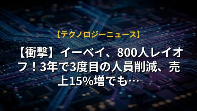 【衝撃】イーベイ、800人レイオフ!3年で3度目の人員削減、売上15%増でも…
