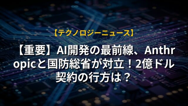 【重要】AI開発の最前線、Anthropicと国防総省が対立!2億ドル契約の行方は?