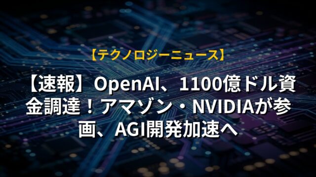 【速報】OpenAI、1100億ドル資金調達!アマゾン・NVIDIAが参画、AGI開発加速へ