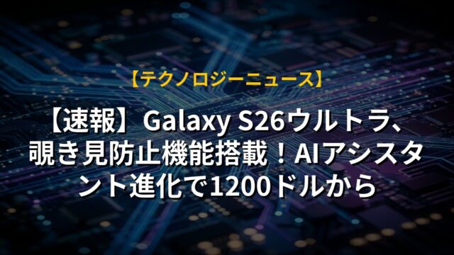 【速報】Galaxy S26ウルトラ、覗き見防止機能搭載!AIアシスタント進化で1200ドルから