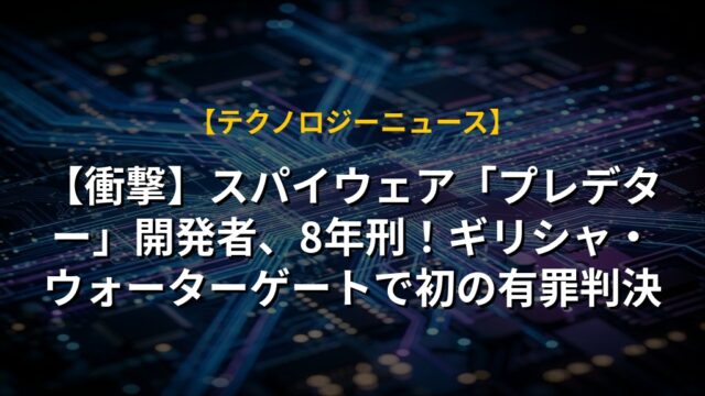 【衝撃】スパイウェア「プレデター」開発者、8年刑!ギリシャ・ウォーターゲートで初の有罪判決