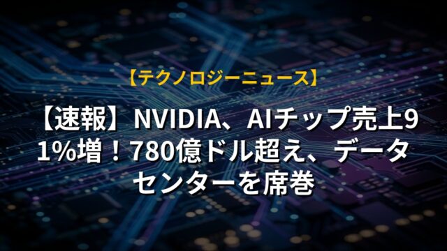 【速報】NVIDIA、AIチップ売上91%増!780億ドル超え、データセンターを席巻