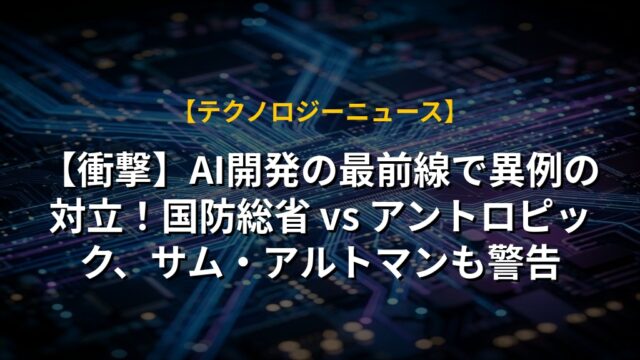 【衝撃】AI開発の最前線で異例の対立!国防総省 vs アントロピック、サム・アルトマンも警告