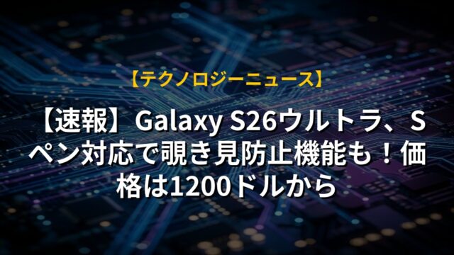 【速報】Galaxy S26ウルトラ、Sペン対応で覗き見防止機能も!価格は1200ドルから