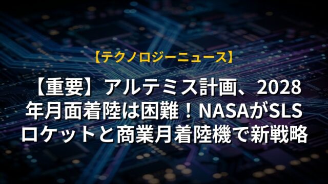 【重要】アルテミス計画、2028年月面着陸は困難!NASAがSLSロケットと商業月着陸機で新戦略