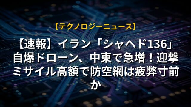 【速報】イラン「シャヘド136」自爆ドローン、中東で急増!迎撃ミサイル高額で防空網は疲弊寸前か
