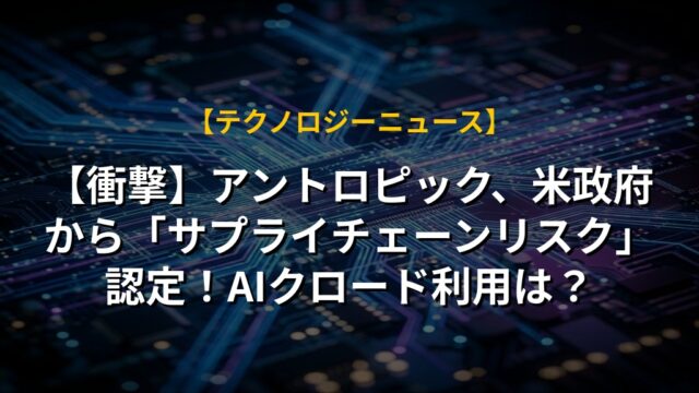 【衝撃】アントロピック、米政府から「サプライチェーンリスク」認定!AIクロード利用は?