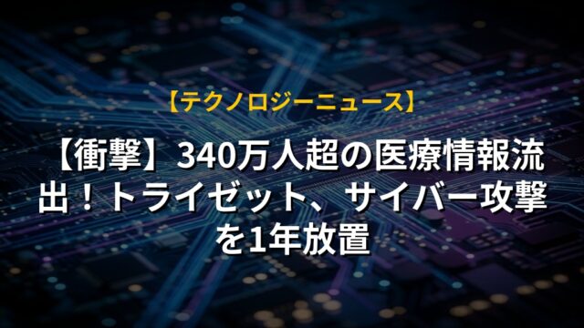 【衝撃】340万人超の医療情報流出!トライゼット、サイバー攻撃を1年放置