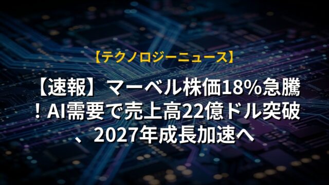 【速報】マーベル株価18%急騰!AI需要で売上高22億ドル突破、2027年成長加速へ
