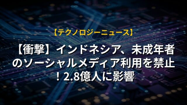 【衝撃】インドネシア、ソーシャルメディア年齢制限へ!13歳未満は利用不可?