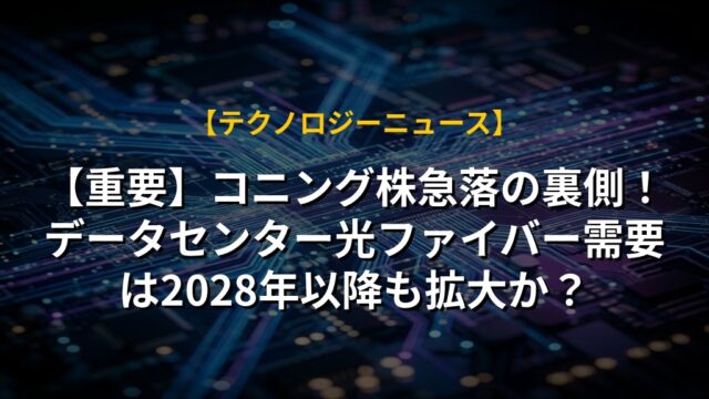 【重要】コニング株急落の裏側!データセンター光ファイバー需要は2028年以降も拡大か?