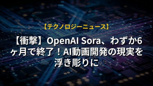 【衝撃】OpenAI Sora、わずか6ヶ月で終了!AI動画開発の現実を浮き彫りに