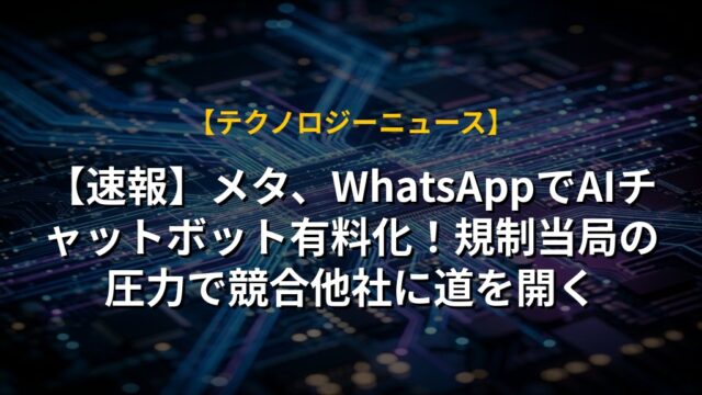 【速報】メタ、WhatsAppでAIチャットボット有料化!規制当局の圧力で競合他社に道を開く