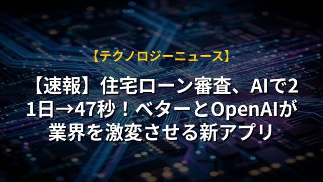【速報】住宅ローン審査、AIで21日→47秒!ベターとOpenAIが業界を激変させる新アプリ