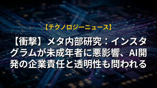 【衝撃】メタ内部研究:インスタグラムが未成年者に悪影響、AI開発の企業責任と透明性も問われる