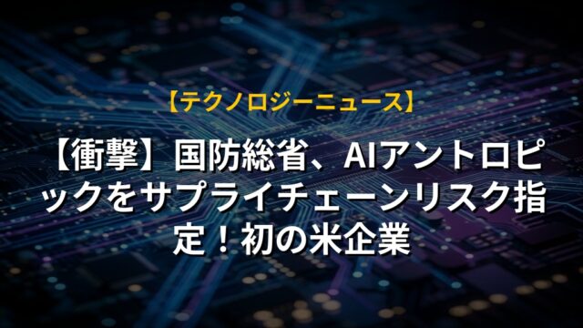【衝撃】国防総省、AIアントロピックをサプライチェーンリスク指定!初の米企業