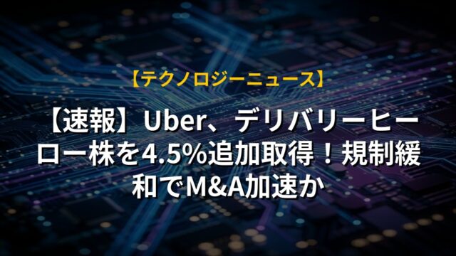 【速報】Uber、デリバリーヒーロー株を4.5%追加取得!規制緩和でM&A加速か