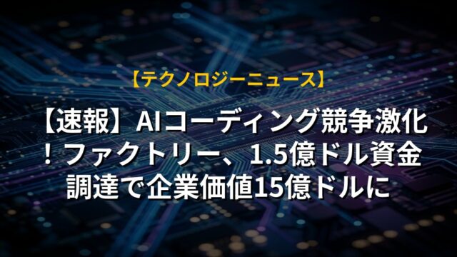 【速報】AIコーディング競争激化!ファクトリー、1.5億ドル資金調達で企業価値15億ドルに