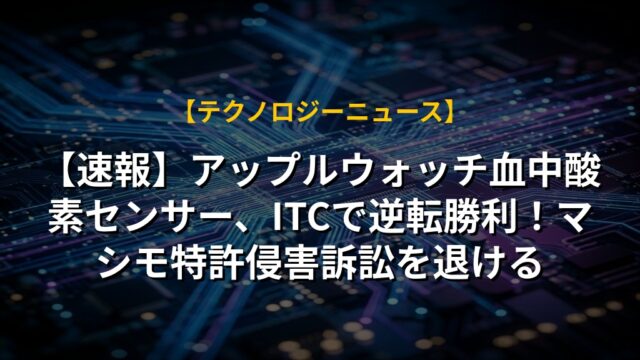 【速報】アップルウォッチ、血中酸素センサーでITC輸入禁止を回避!マシモ訴訟で光明か