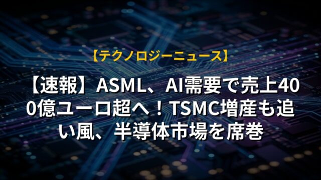 【速報】ASML、AI需要で売上400億ユーロ超へ!TSMC増産も追い風、半導体市場を席巻