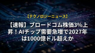 【速報】ブロードコム株価3%上昇!AIチップ需要急増で2027年は1000億ドル超えか