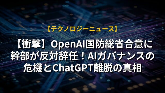 【衝撃】OpenAI国防総省合意に幹部が反対辞任!AIガバナンスの危機とChatGPT離脱の真相