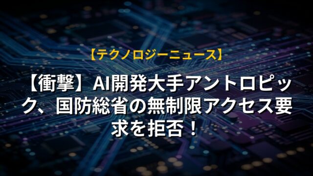 【衝撃】AI開発大手アントロピック、国防総省の無制限アクセス要求を拒否!