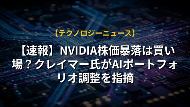 【速報】NVIDIA株価暴落は買い場?クレイマー氏がAIポートフォリオ調整を指摘