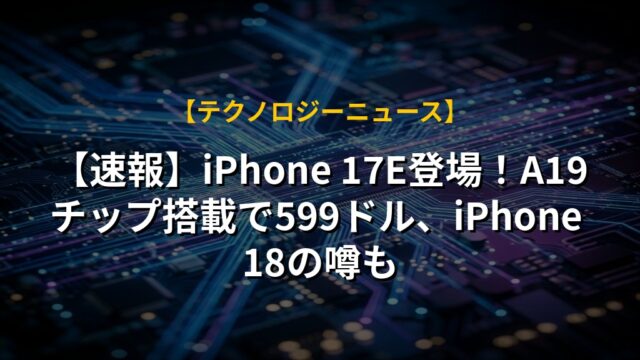 【速報】iPhone 17E登場!A19チップ搭載で599ドル、iPhone 18の噂も