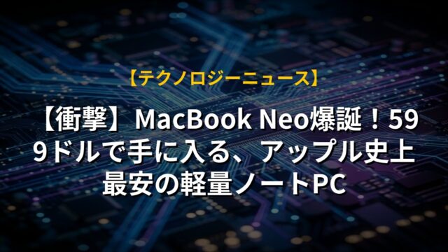 【衝撃】MacBook Neo爆誕!599ドルで手に入る、アップル史上最安の軽量ノートPC