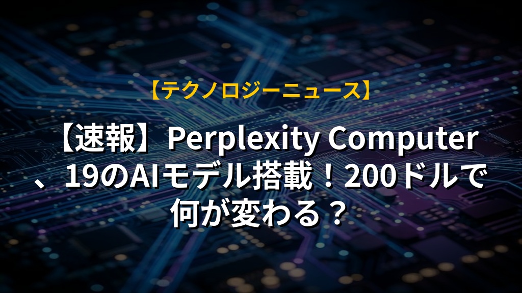 【速報】Perplexity Computer、19のAIモデル搭載!200ドルで何が変わる?
