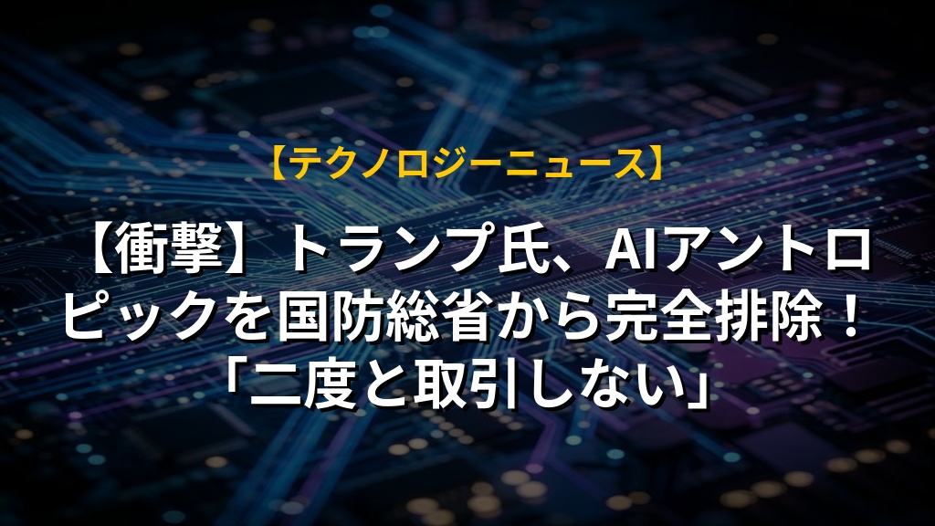 【衝撃】トランプ氏、AIアントロピックを国防総省から完全排除!「二度と取引しない」