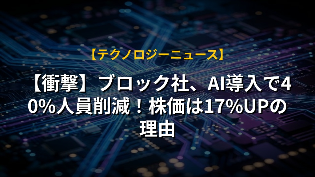【衝撃】ブロック社、AI導入で40%人員削減!株価は17%UPの理由