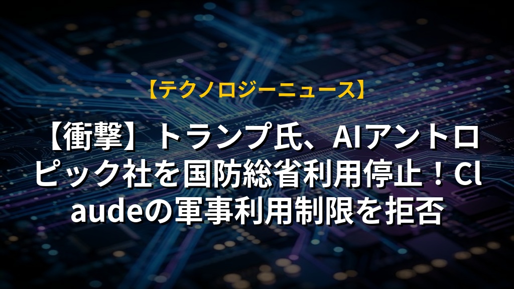 【衝撃】トランプ氏、AIアントロピック社を国防総省利用停止!Claudeの軍事利用制限を拒否