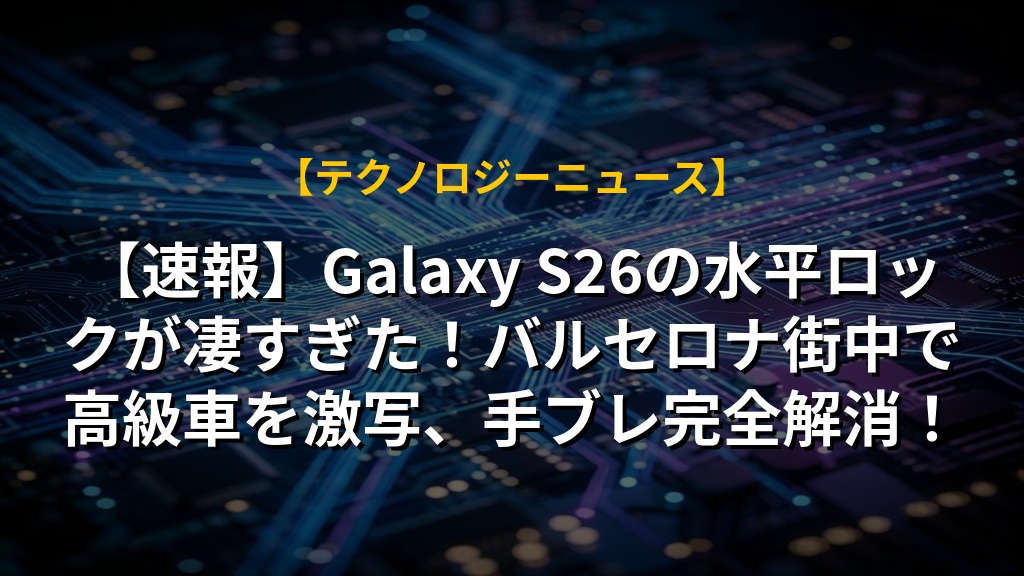 【速報】Galaxy S26の水平ロックが凄すぎた!バルセロナ街中で高級車を激写、手ブレ完全解消!
