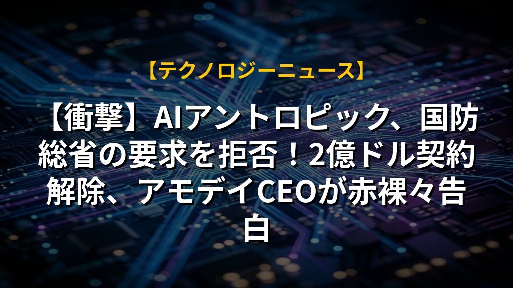 【衝撃】AIアントロピック、国防総省の要求を拒否!2億ドル契約解除、アモデイCEOが赤裸々告白