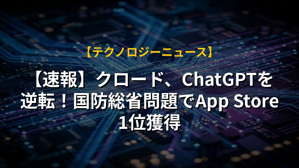【速報】クロード、ChatGPTを逆転!国防総省問題でApp Store1位獲得