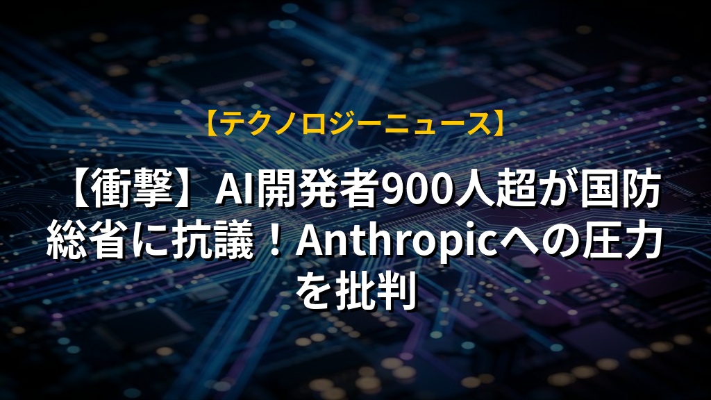 【衝撃】AI開発者900人超が国防総省に抗議!Anthropicへの圧力を批判