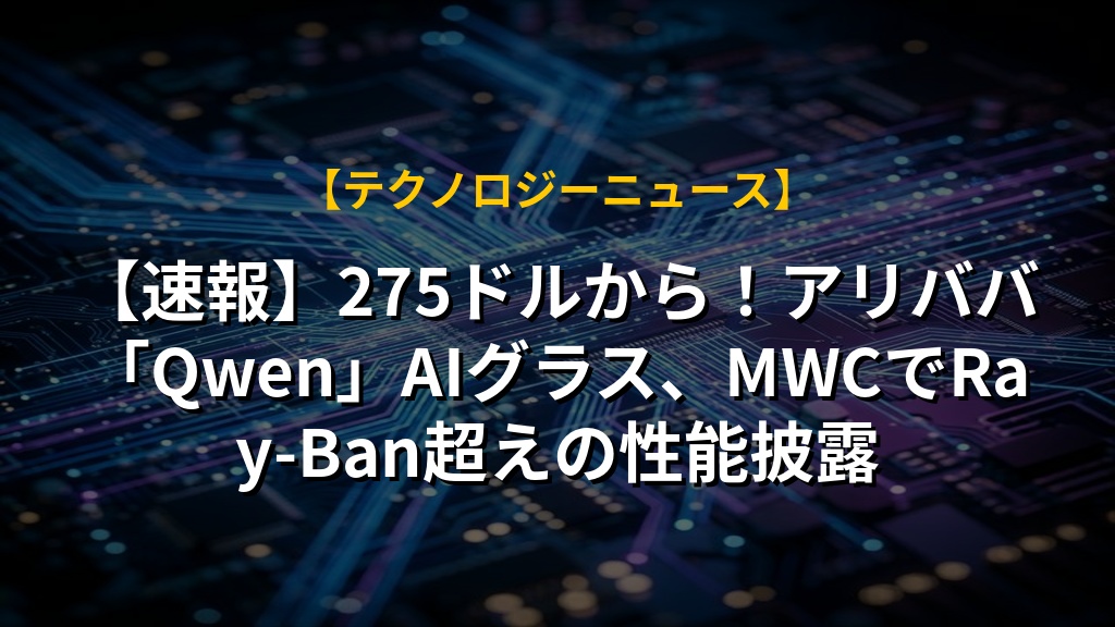 - アリババがMWCで発表したQwenスマートグラスは、AI機能を搭載し、メタ社の製品に匹敵する性能を持つ。