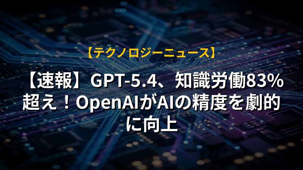【速報】GPT-5.4、知識労働83%超え!OpenAIがAIの精度を劇的に向上