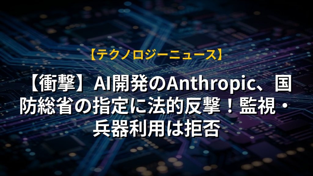 【衝撃】AI開発のAnthropic、国防総省の指定に法的反撃!監視・兵器利用は拒否