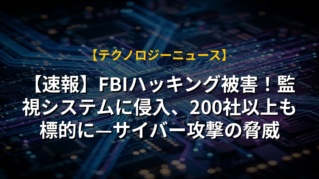 【速報】FBIハッキング被害!監視システムに侵入、200社以上も標的に—サイバー攻撃の脅威