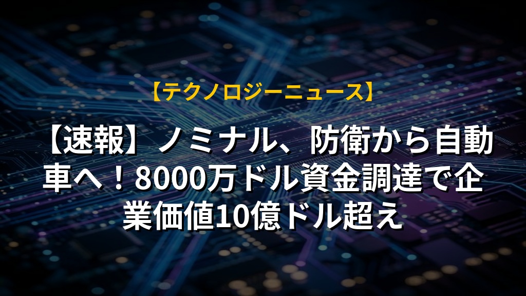 【速報】ノミナル、防衛から自動車へ!8000万ドル資金調達で企業価値10億ドル超え