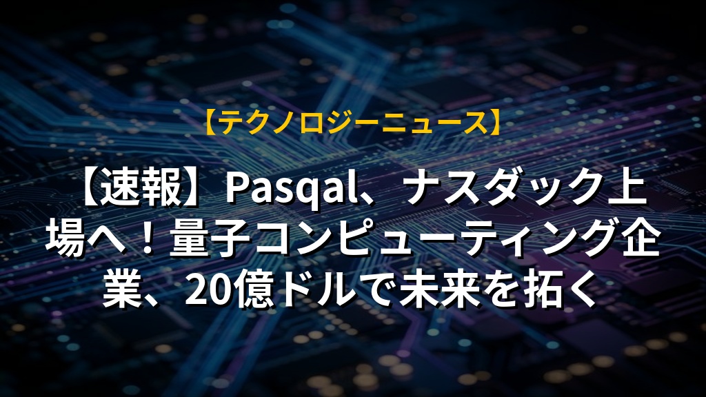 【速報】Pasqal、ナスダック上場へ!量子コンピューティング企業、20億ドルで未来を拓く