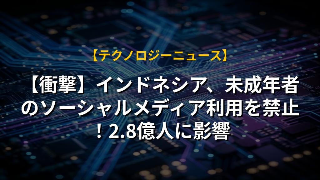 【衝撃】インドネシア、未成年者のソーシャルメディア利用を禁止!2.8億人に影響
