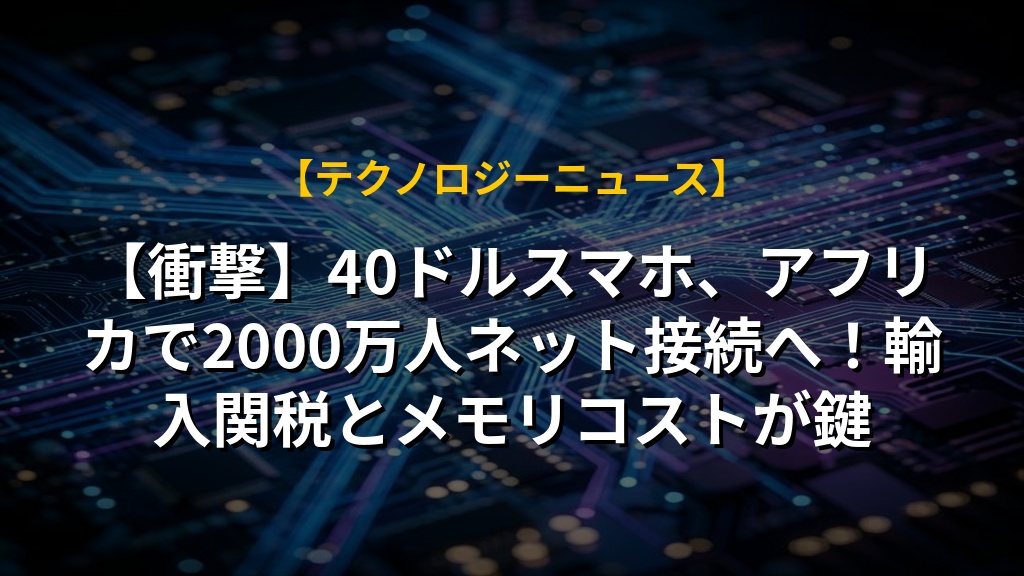 【衝撃】40ドルスマホ、アフリカで2000万人ネット接続へ!輸入関税とメモリコストが鍵