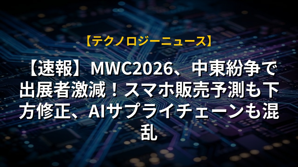 【速報】MWC2026、中東紛争で出展者激減!スマホ販売予測も下方修正、AIサプライチェーンも混乱
