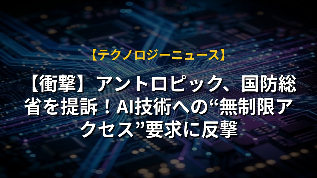 【衝撃】アントロピック、国防総省を提訴!AI技術への“無制限アクセス”要求に反撃