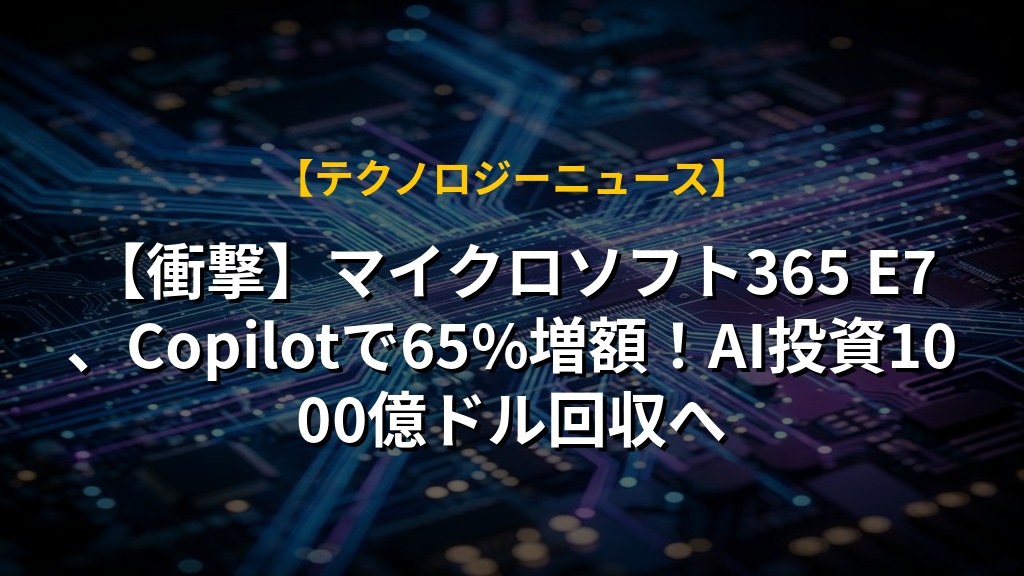 【衝撃】マイクロソフト365 E7、Copilotで65%増額!AI投資1000億ドル回収へ