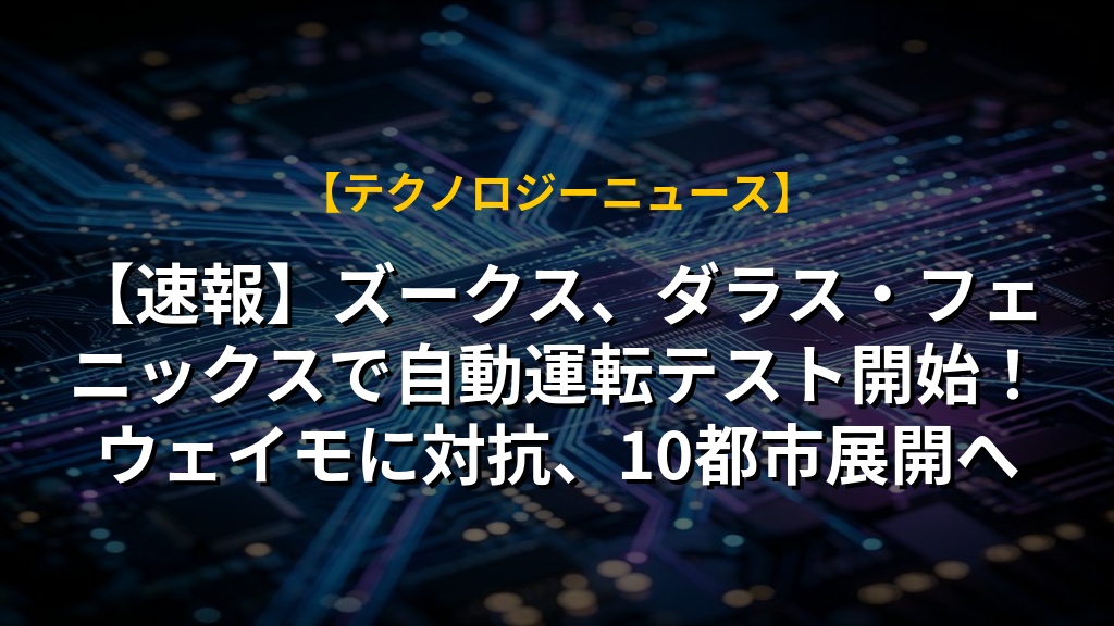 【速報】ズークス、ダラス・フェニックスで自動運転テスト開始!ウェイモに対抗、10都市展開へ